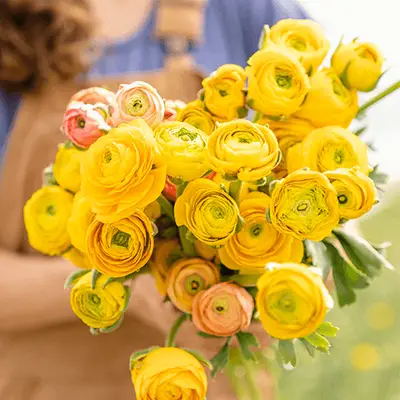 I fiori romantici di Ranunculus danno al tuo bouquet un bell'aspetto rilassato. I petali paffuti e abbondanti li rendono un po 'a metà strada tra rose e peonie.