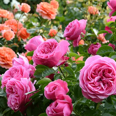 Analogamente alle rose tradizionali inglesi, le rose da giardino hanno una disposizione del petalo quasi sferico, che li rende uno scambio ideale per le peonie.